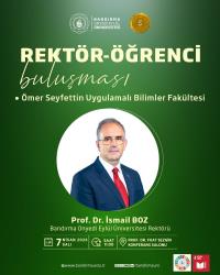 Üniversitemizde düzenli olarak gerçekleştirilen “Rektör-Öğrenci Buluşmaları” kapsamında Rektörümüz Prof. Dr. İsmail Boz; Ömer Seyfettin Uygulamalı Bilimler Fakültesi öğrencilerimizle bir araya gelecektir.