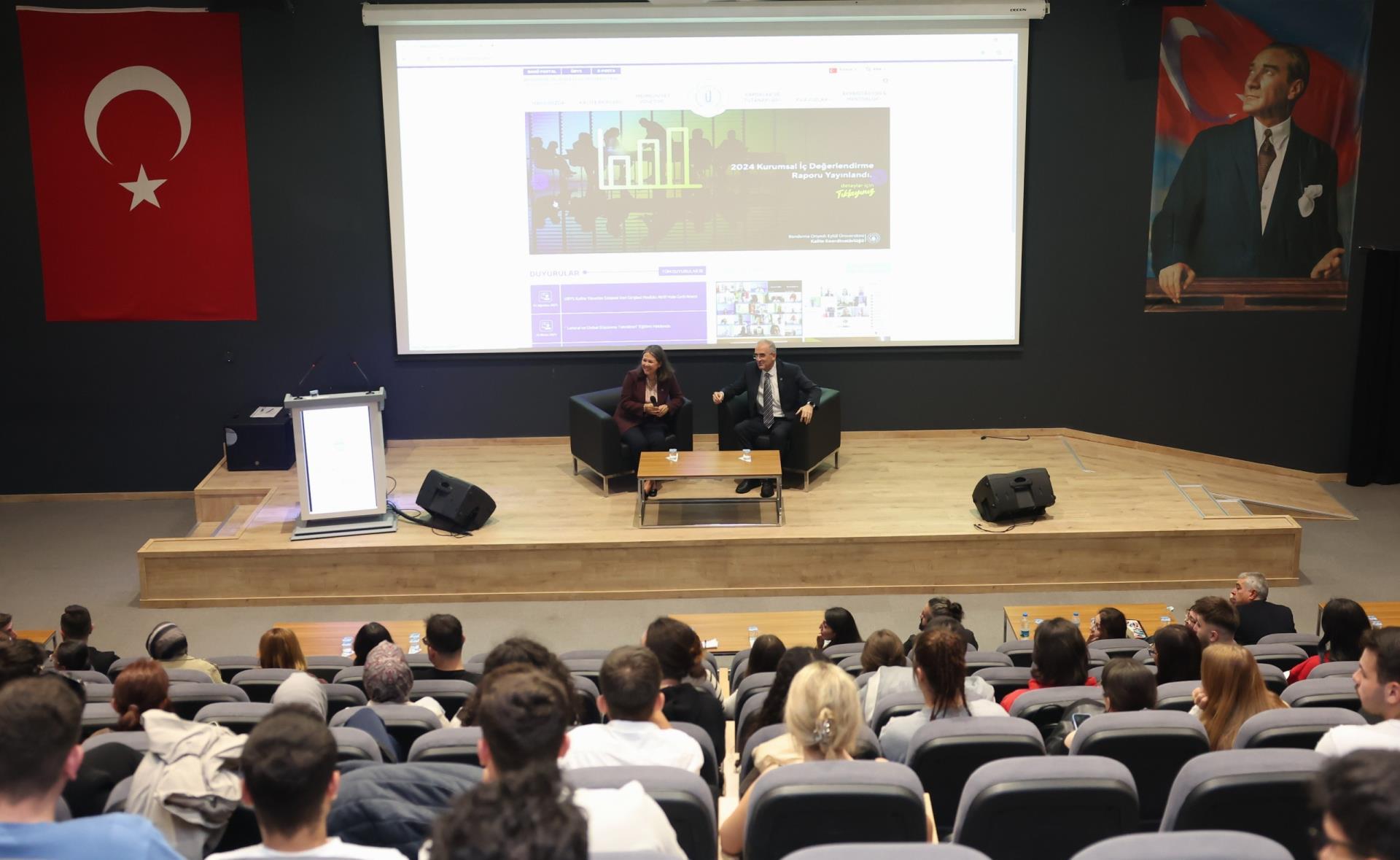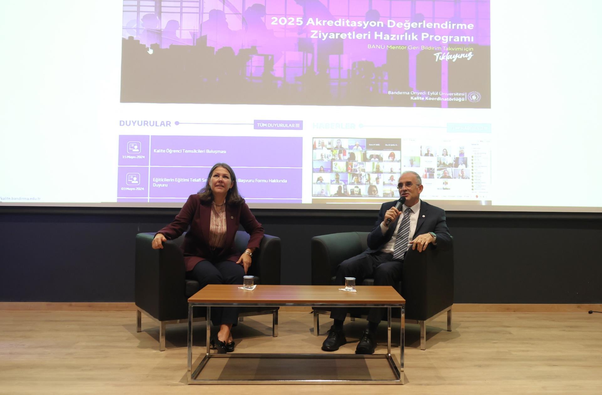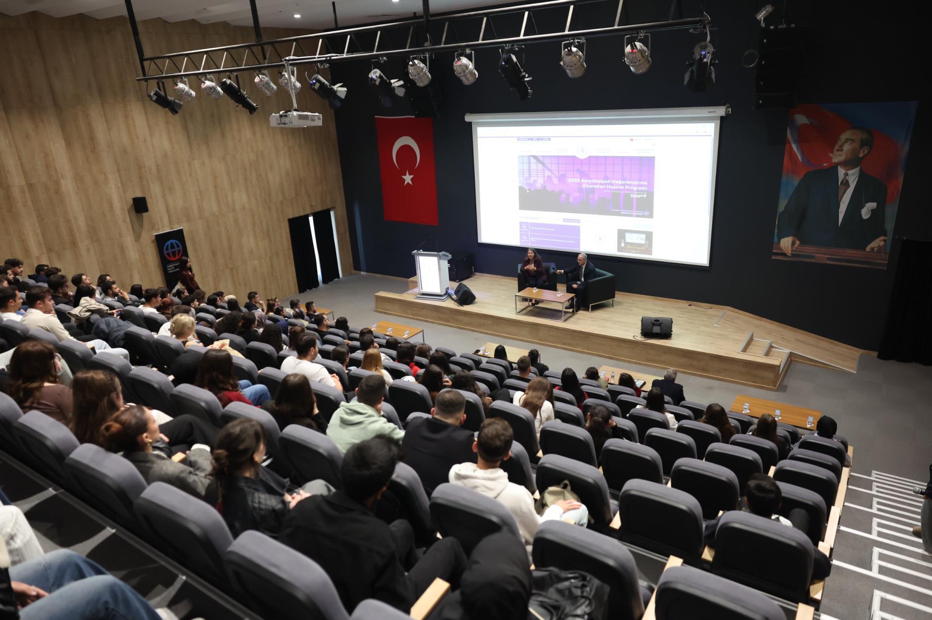 Programın devamında, Rektörümüz Prof. Dr. İsmail Boz, Rektör Yardımcımız Prof. Dr. Ebru Kaya Mutlu ve akademik birim temsilcilerimiz, öğrencilerle birlikte yürütülen kalite süreçleri hakkında bilgi verirken, katılımcılardan gelen soruları da yanıtladı.